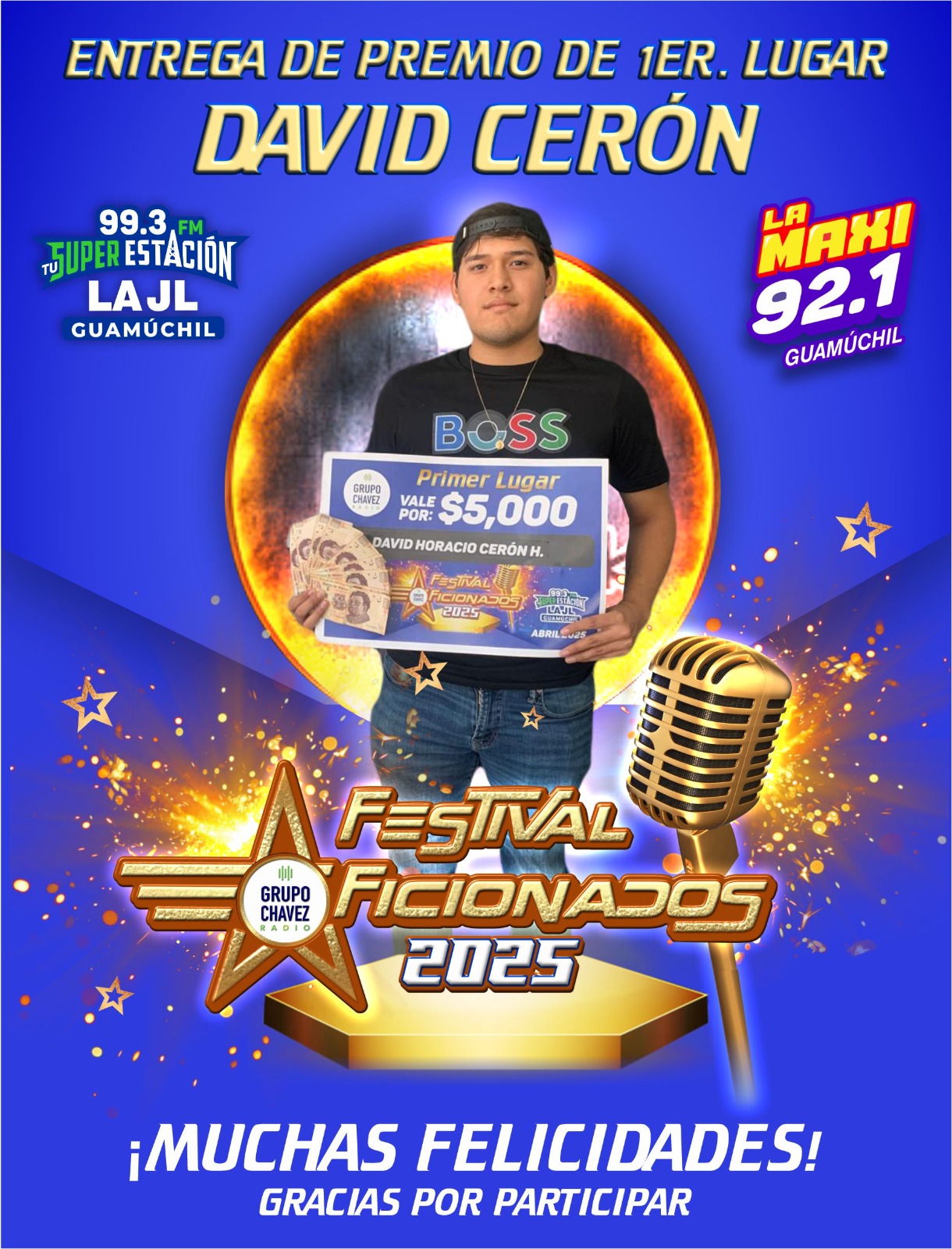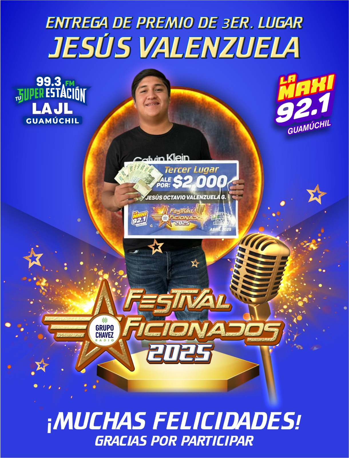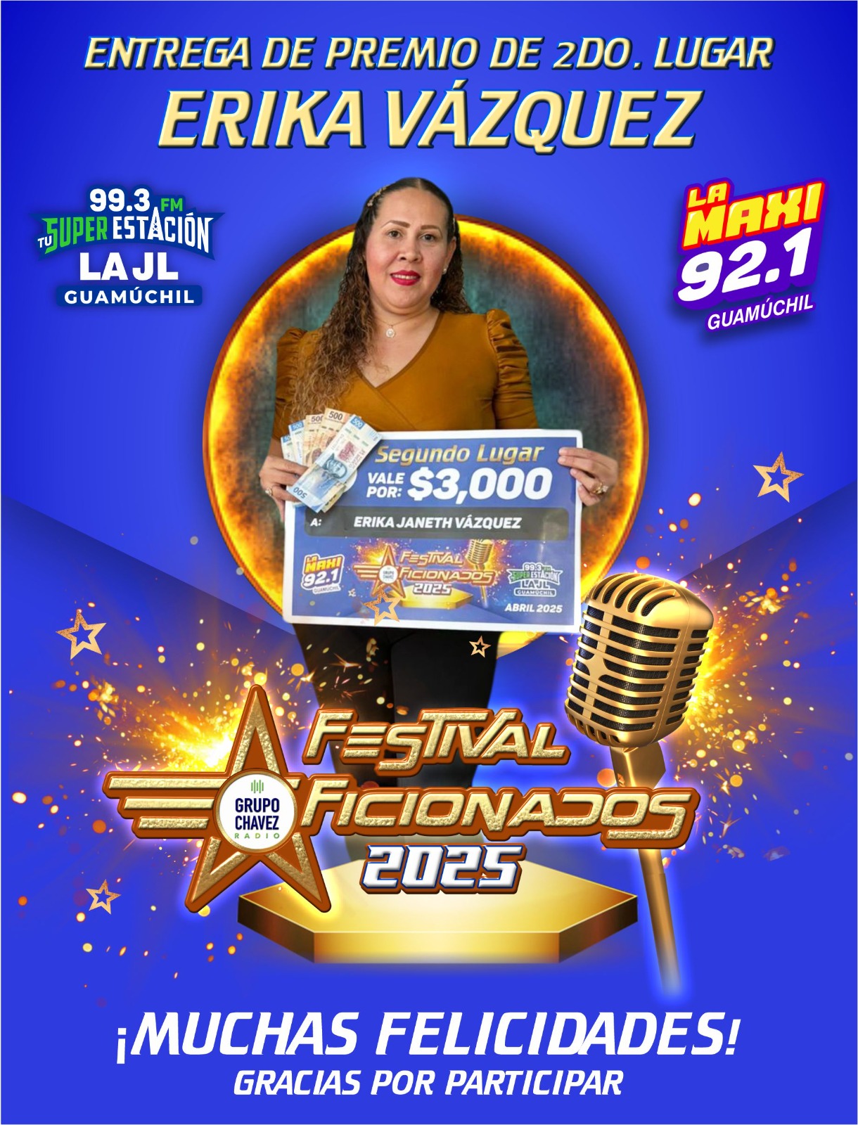 Guamúchil, Sinaloa – Con gran entusiasmo se llevó a cabo la entrega de premios a los ganadores del esperado certamen #Aficionados2025, organizado por La MAXI 92.1 FM y JL 99.3 FM.